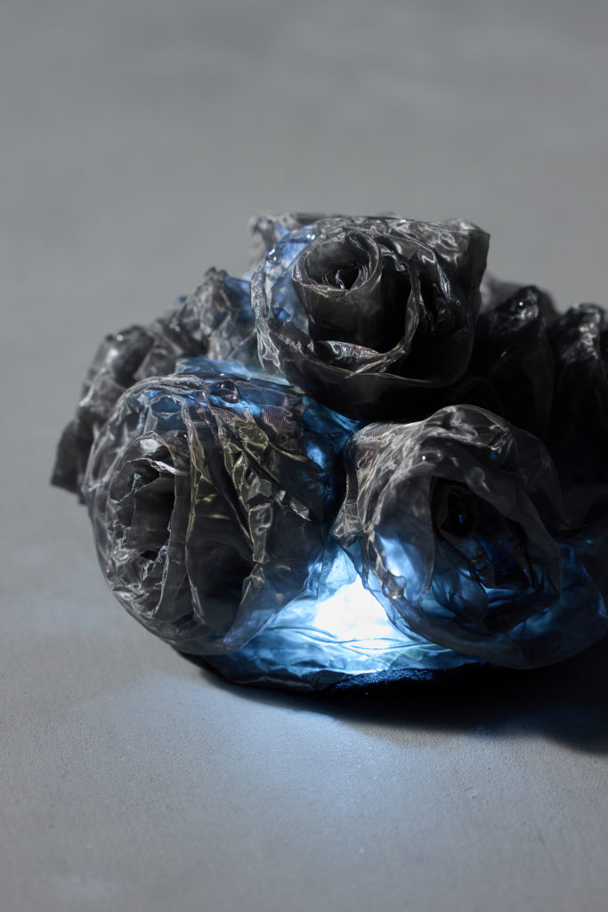 かつて七草に数えられ愛されたススキは、今や雑草として切り捨てられる存在となった。そのような現状で、私は廃棄されるはずの人工物を拾い上げ手を加えることで、ススキの持つ美しさを感じ得ようと試みた。人工物を生むための、土台として造られた道具を加工し、丁寧に廃棄物を植え付けていく。ススキは人が土壌を耕す必要などなく、自らで力強くそそり立つにも関わらず。私たちは、自然の美しさに感動しながらも、同時に自然を破壊し、人工物を作り上げてきた。そして、その人工物の中で再び自然の美しさを求めるという、矛盾を繰り返す。この矛盾は、単なる愚かさでなく、むしろ人間の複雑な心や創造性の表れと言えるかもしれない。この作品はその象徴となる。